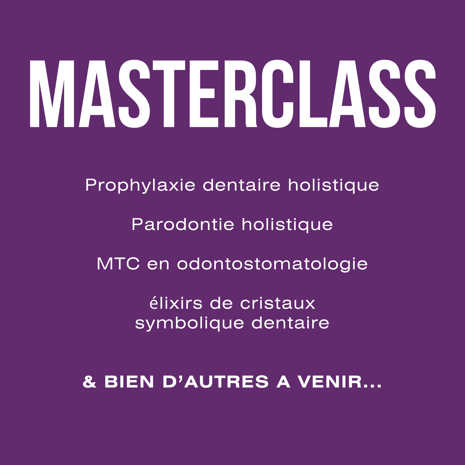 Grâce à celà, vous ferez partie d'un mastermind de dentistes holistiques. Ce qui vous rendra encore plus épanouis et vous donnera l'opportunité de vous perfectionner en continu !